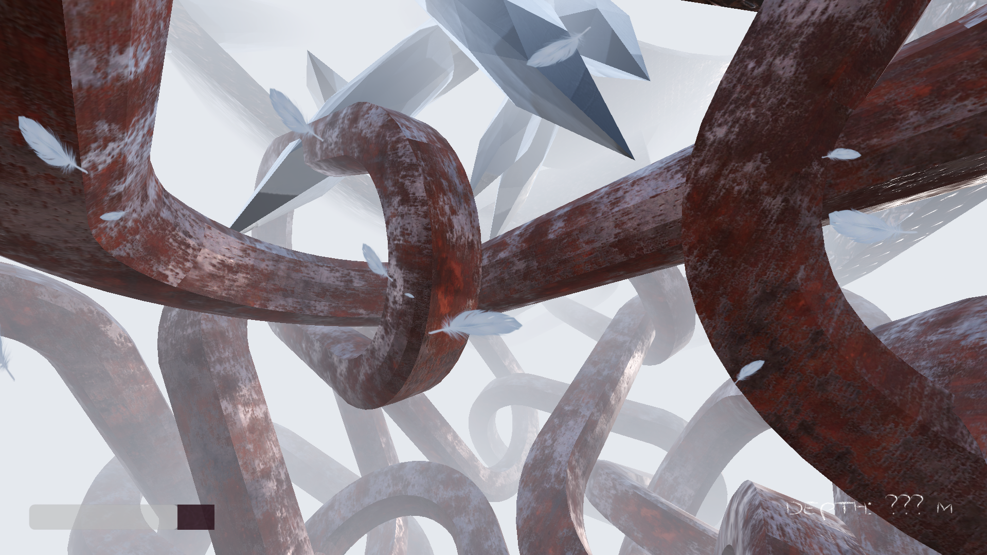 First I spent time getting the movement right, to find a good balance between slight air control and committing to the jump. The bounce mechanic was tricky, and I still think it could have been much better. Then, because of time constrains, me wanting to export the game to html and my lacking 3D skills, I thought of building the entire level with just a couple of different objects. This meant that the objects should be inherently fun to traverse from many different angles. That they also all have the same scale is a deliberate choice, because I wanted players to get really familiar with the objects. Personally I think the chain is the most fun object, with the metal plate being second. Then, I put free textures on them. Building the level was extremely quick, I placed the objects almost randomly in the editor, and copy pasted many at once. When an area seemed a bit empty during playtesting, I added more objects, but I basically never moved or rotated objects around once I had placed them. The checkpoint and heal mechanics were not hard to implement, so I still had a lot of time. So I spent quite a lot of time in this jam on "game feel", on adding sounds, screen shake or particles to give feedback to the players. The texts went through many iterations, and I always wrote and rewrote them on the side. Two days before the jam ended, I asked many people to try the game, and realized the main mechanics on left and right click can be pretty hard to grasp, as well as the new mechanic that gets introduced near the bottom of the pit. I'm still not satisfied with how they are communicated to the players. But I was so burned out from programming, I spent a lot of time on the last day just decorating the hut. I was attempting to combine a rage game with a Journey-like, but watching people play made me realize why most Journey-likes have barely any difficulty and are basically "on rails". Being able to fail and restart from the very beginning means it's really hard to have a narrative arc that lands. But maybe I'll try to further explore that idea in the future.